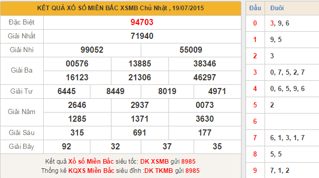 THỐNG KÊ KẾT QUẢ ĐẶC BIỆT